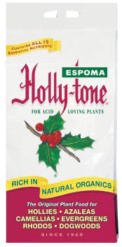 | Holly Tone | organic shrub fertilizer by Espoma • sold in 25 and 50 lb. plastic bags • for acid loving plants |